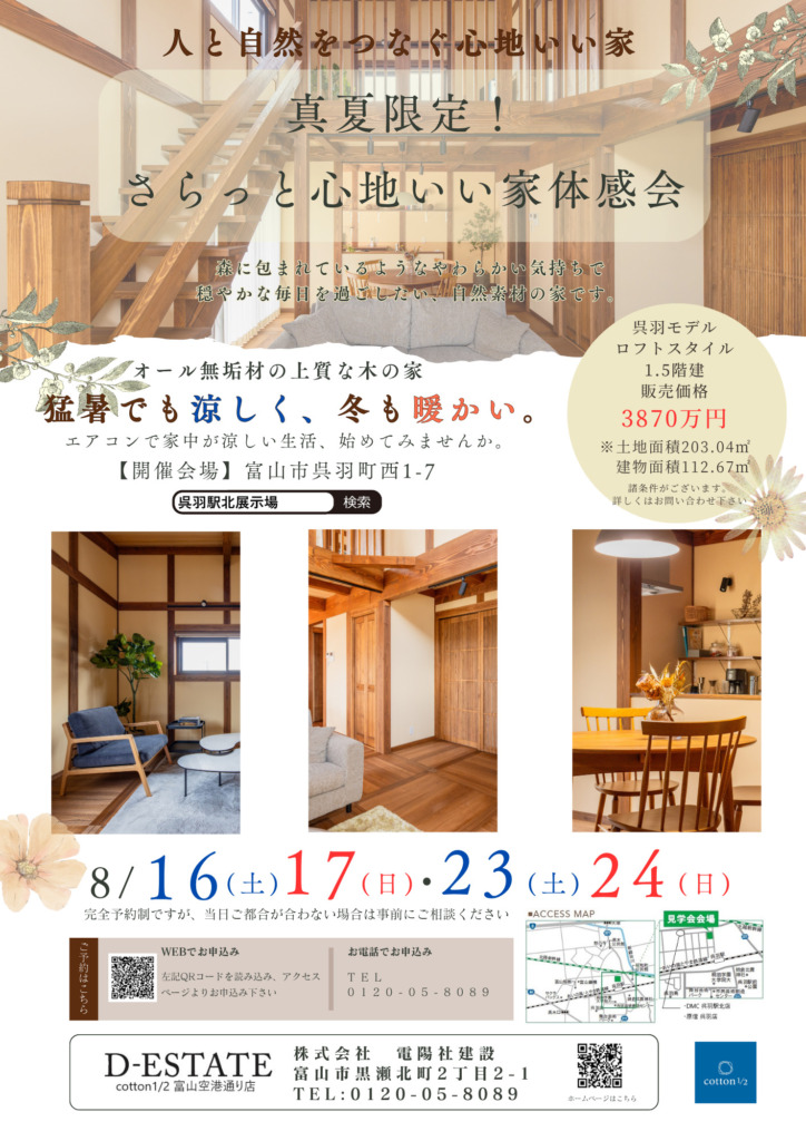 ・住所:富山県富山市呉羽町西1-7 ※google map呉羽駅北展示場で検索