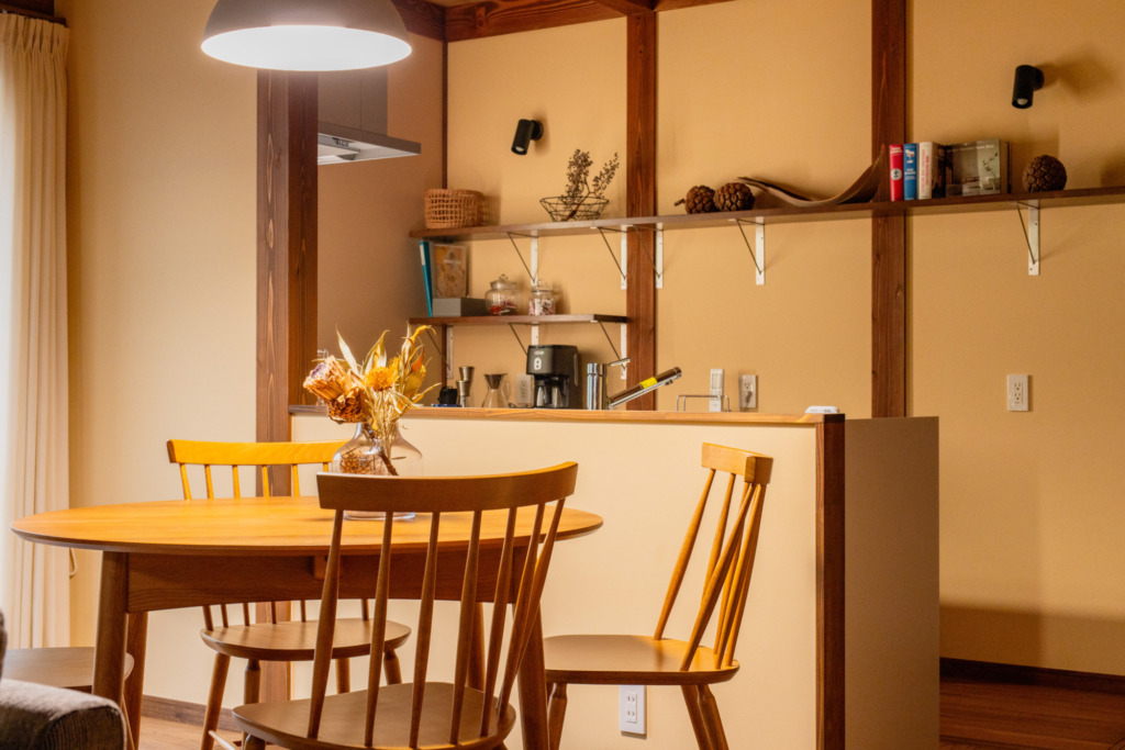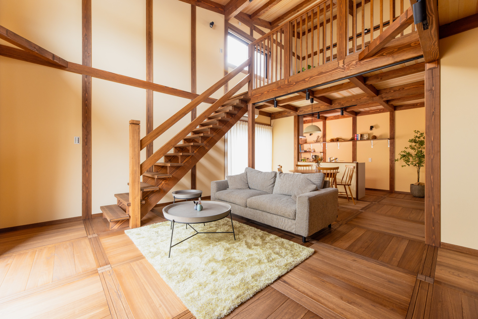 柱や梁を室内に現す真壁づくりが、木のぬくもりと空間の豊かさを引き立てます。