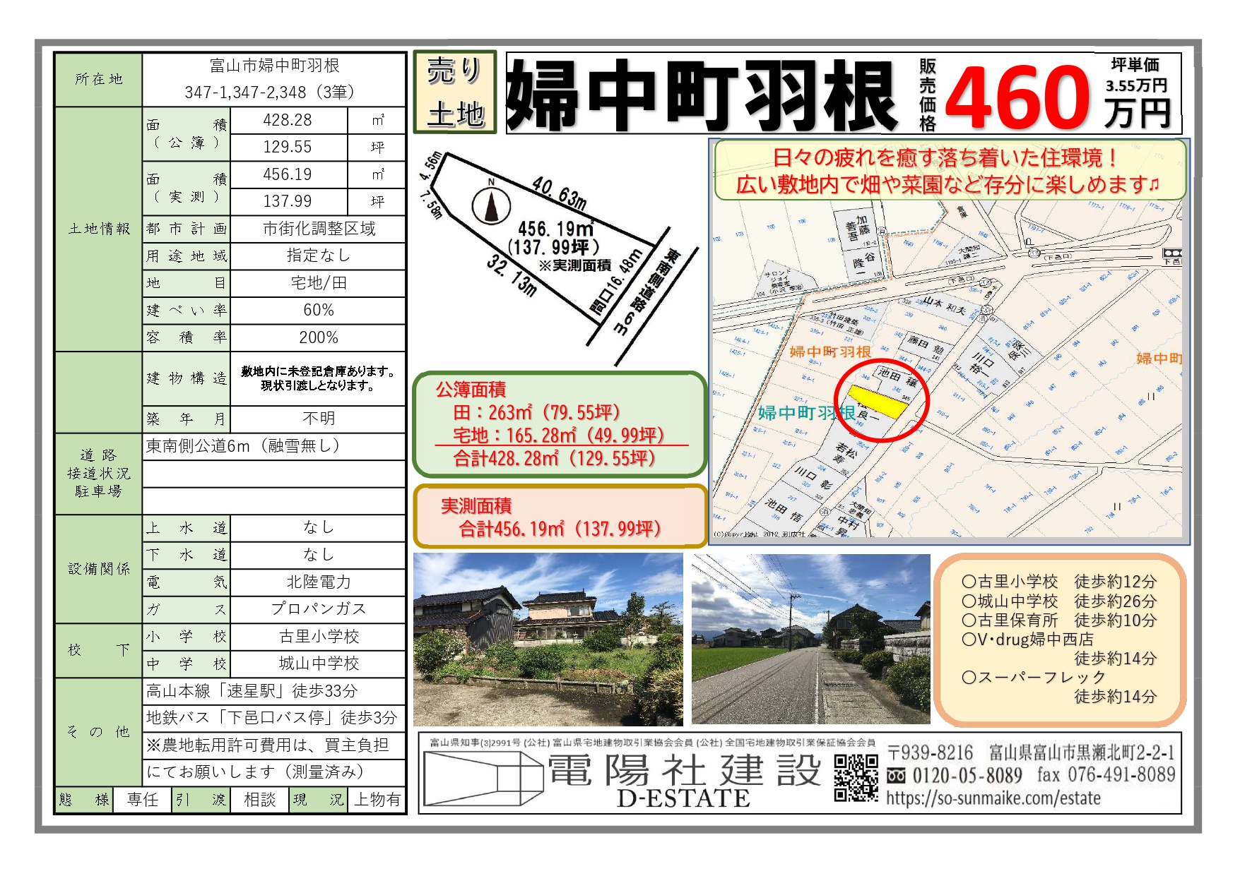 | 物件所在地 | 富山市婦中町羽根347-1、347-2、348 |