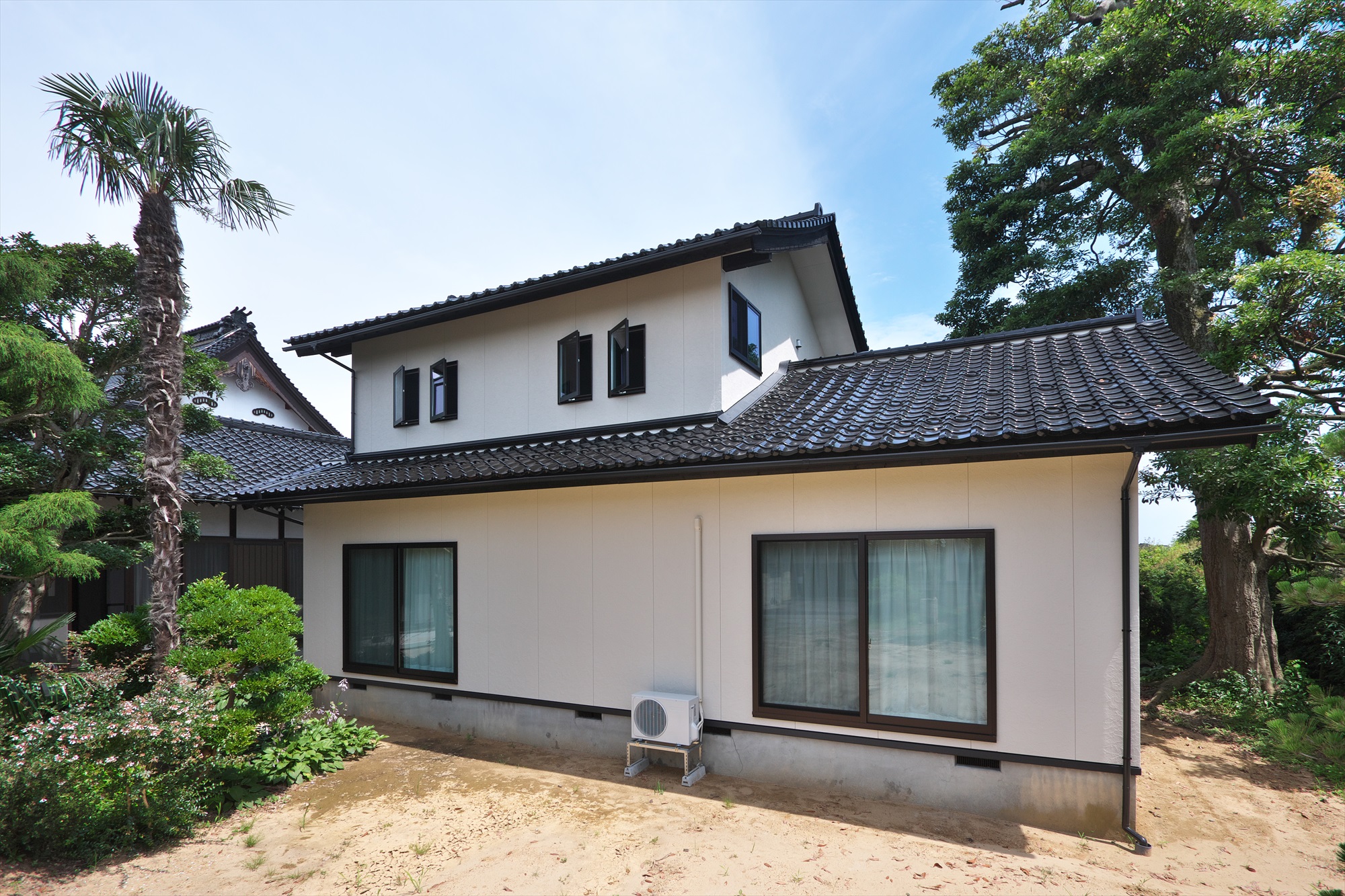 外壁は全面を塗り替え、母屋の雰囲気と違和感のないシンプルでモダンな印象に仕上ました。