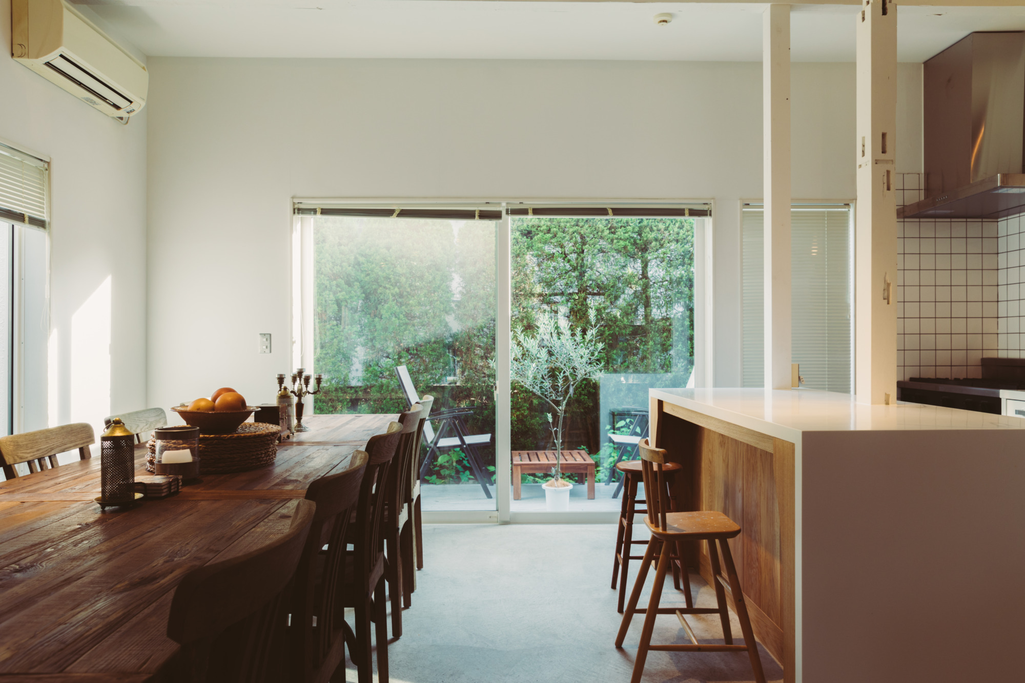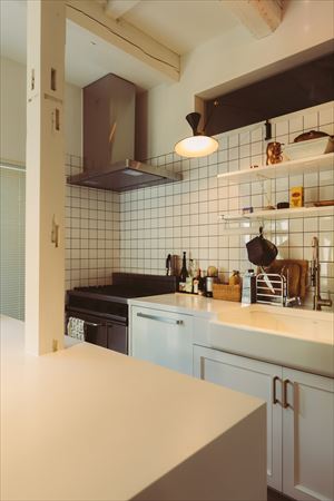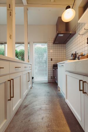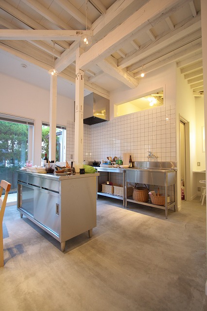 中古住宅をご購入されて、前オーナー様のセンスを引き継ぐカタチで床の土間はそのまま採用。 ご家族で壁の塗装は楽しみながら塗り替え綺麗に。 キッチンは新しく造作キッチンにされました。