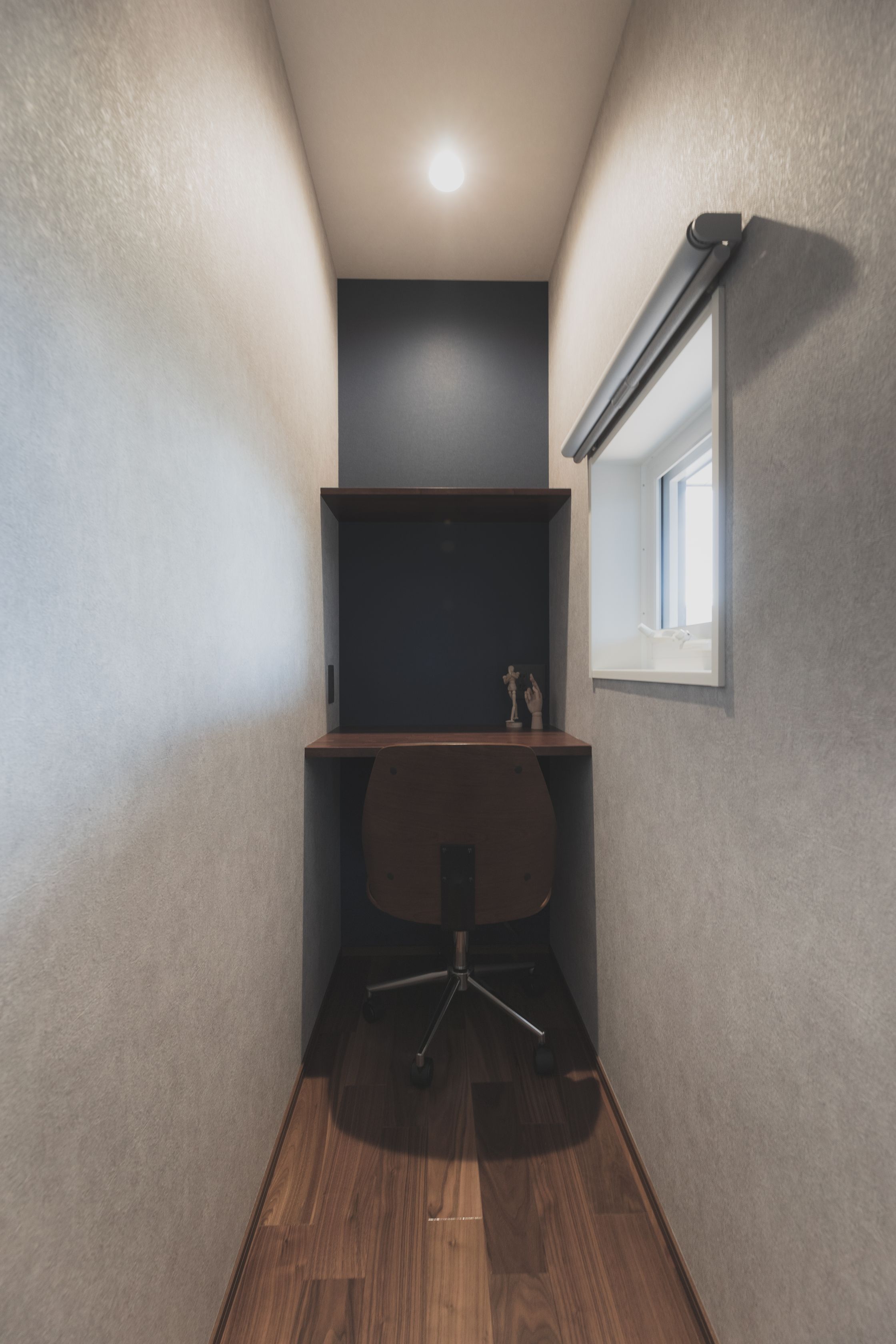 広いリビングがありながら、それぞれの時間を確保できるスペースも。 吸い寄せられるようにリビングに隣接する開口部を抜けると、お子さんたちのスペース。 この広くない廊下がシックリくる隠れ家スペースに。 ここで絵本をよんだり、友達が来た時の遊び場になります。 両サイドにはそれぞれの部屋にもつながっています。