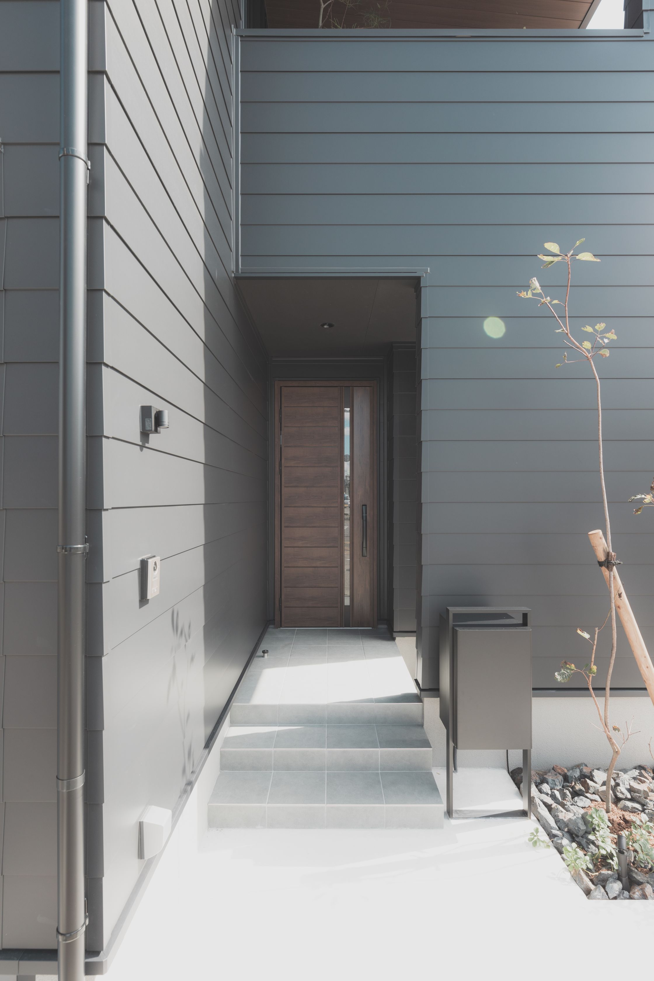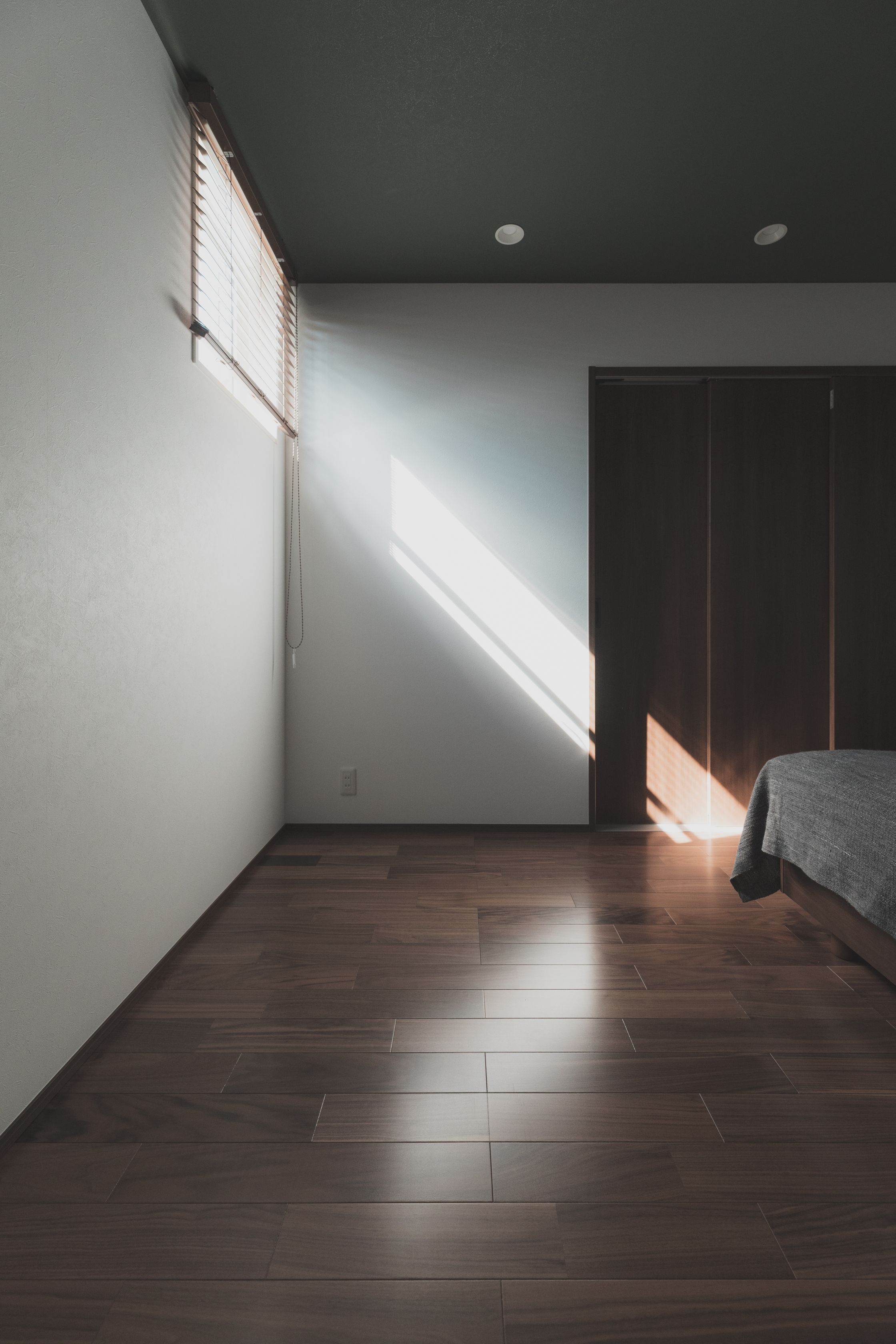 外からみるとスッキリ窓がないようにみえる1階。 防犯も考慮し、高い位置に窓を設置。 高い位置から入る光が心地よい光線となり、部屋を照らしてくれます。