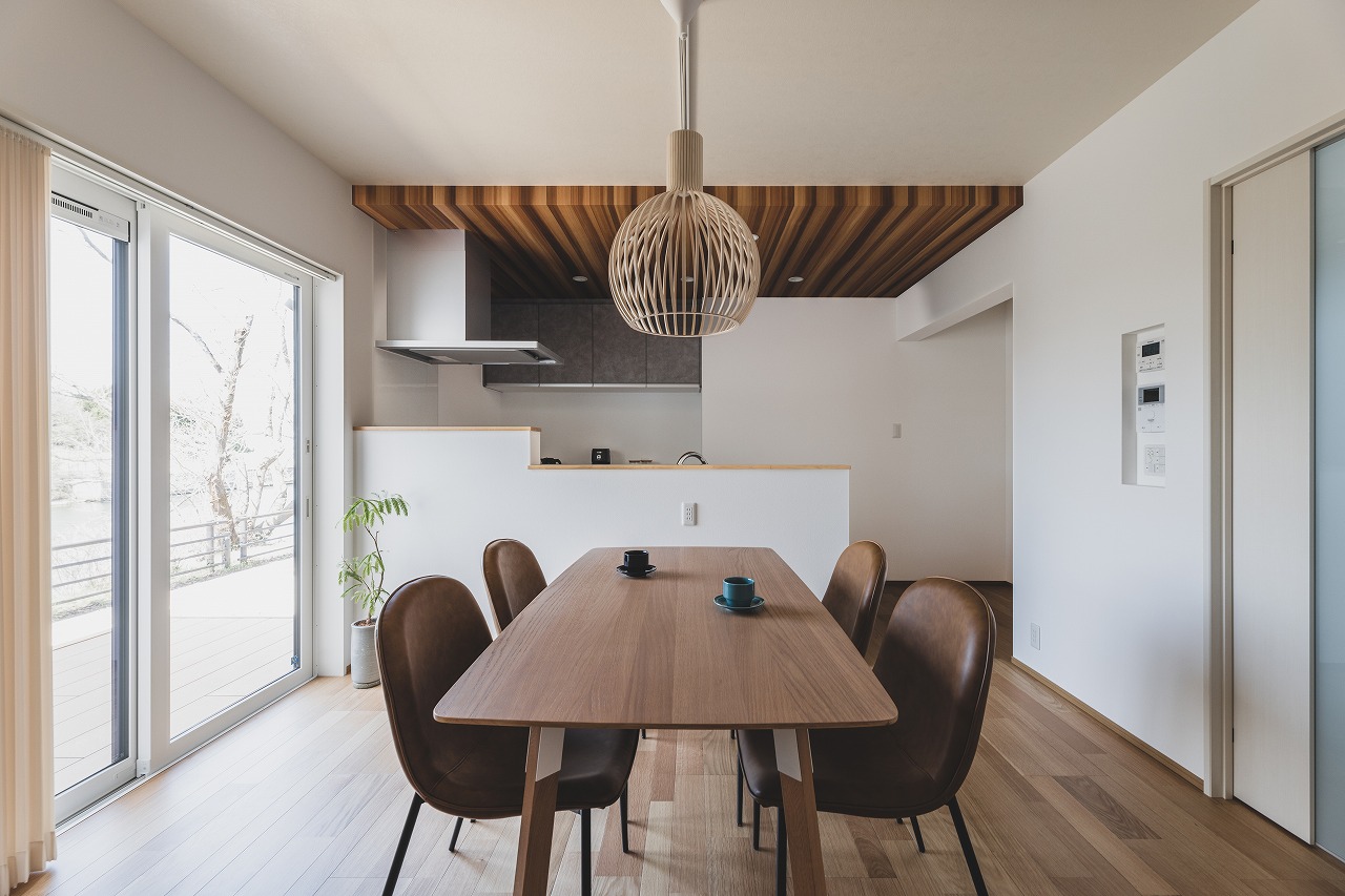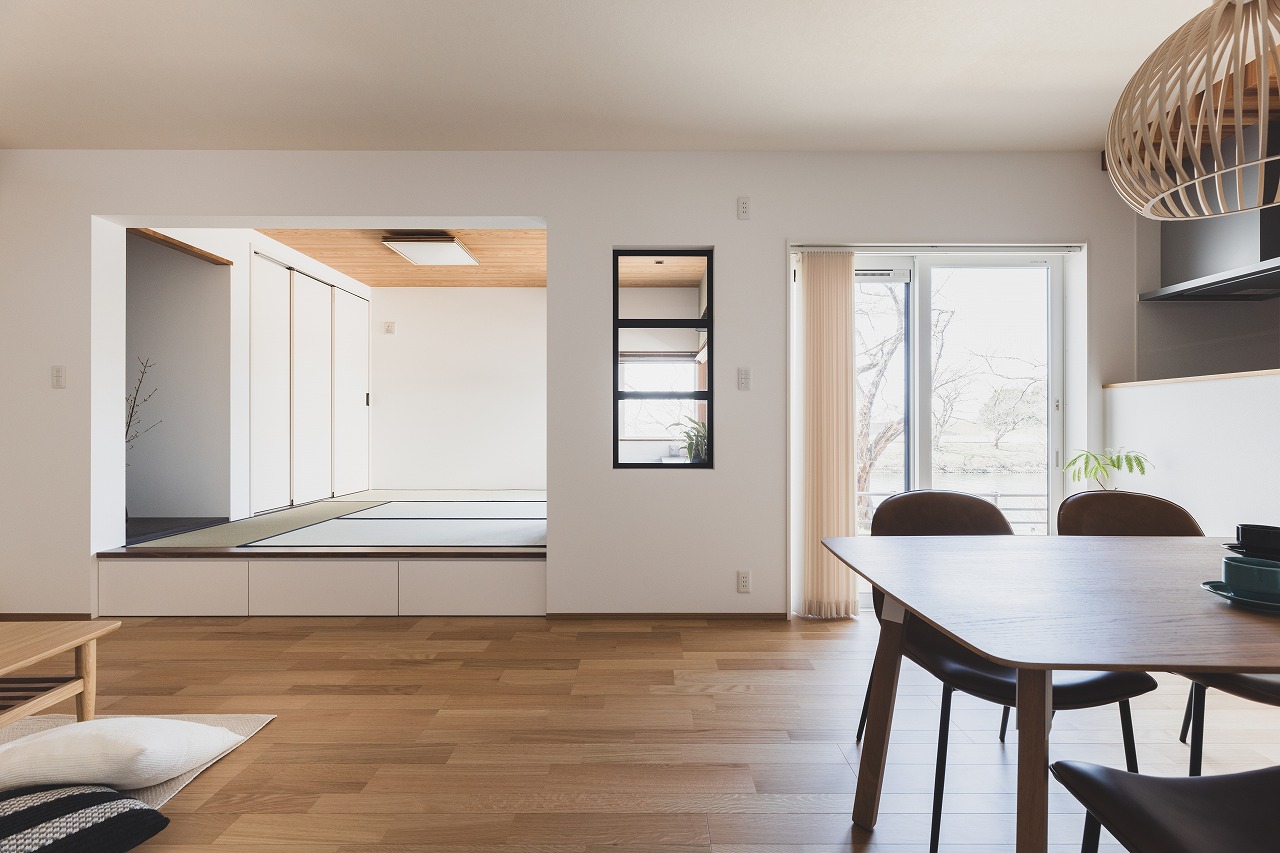 LDKからは、ずっと続く富岩運河の開放的な眺めと、春には桜並木も風景として取り込んだ、景色を独りじめする家になりました。