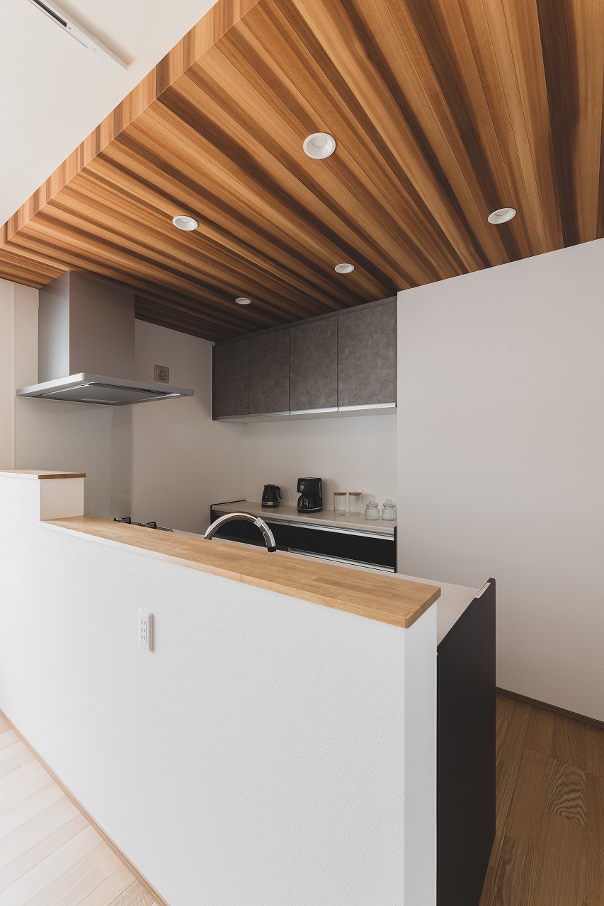 あえて扉は付けず、床を一段高くすることで、一体感の中にも特別な空間に仕上がっています。