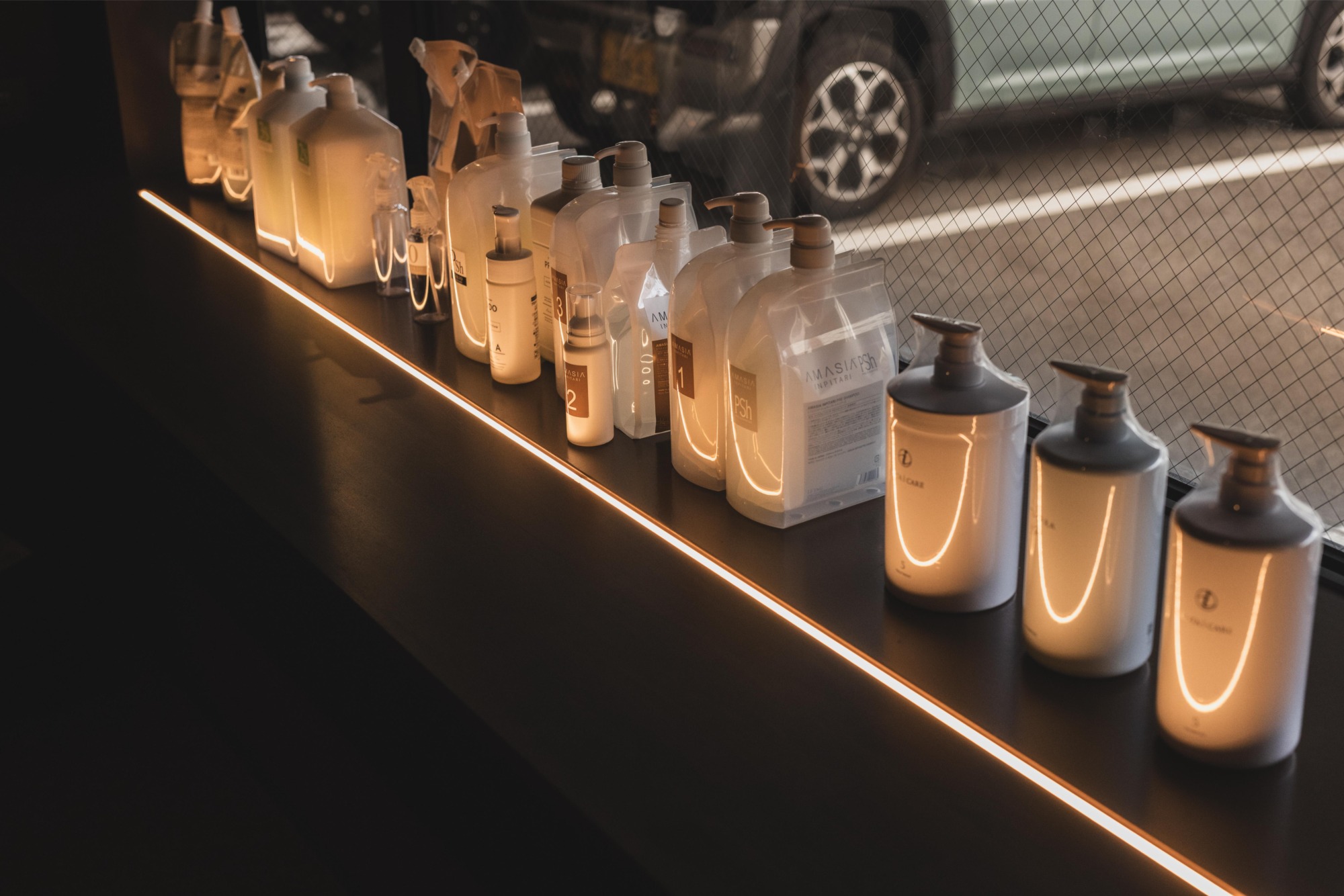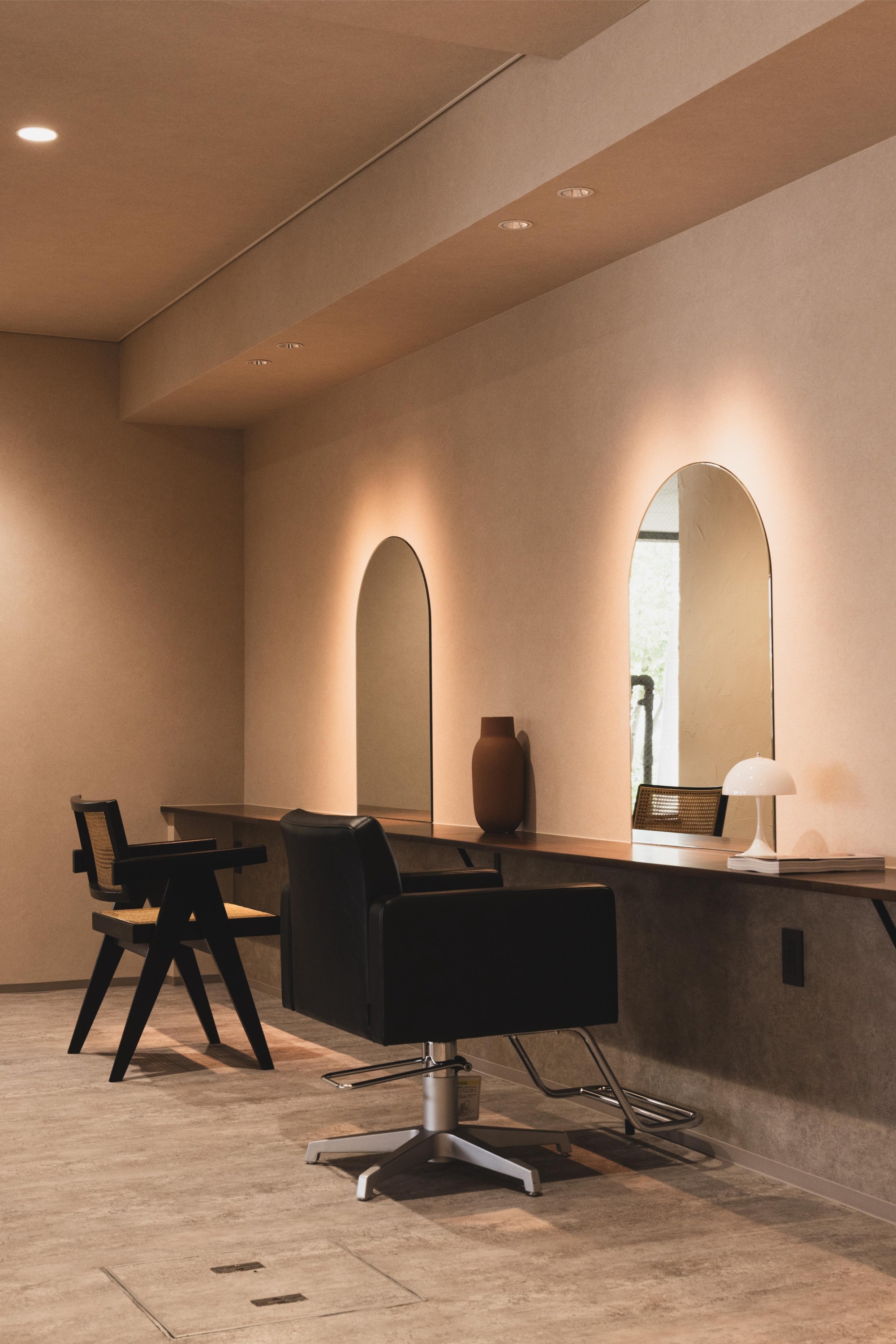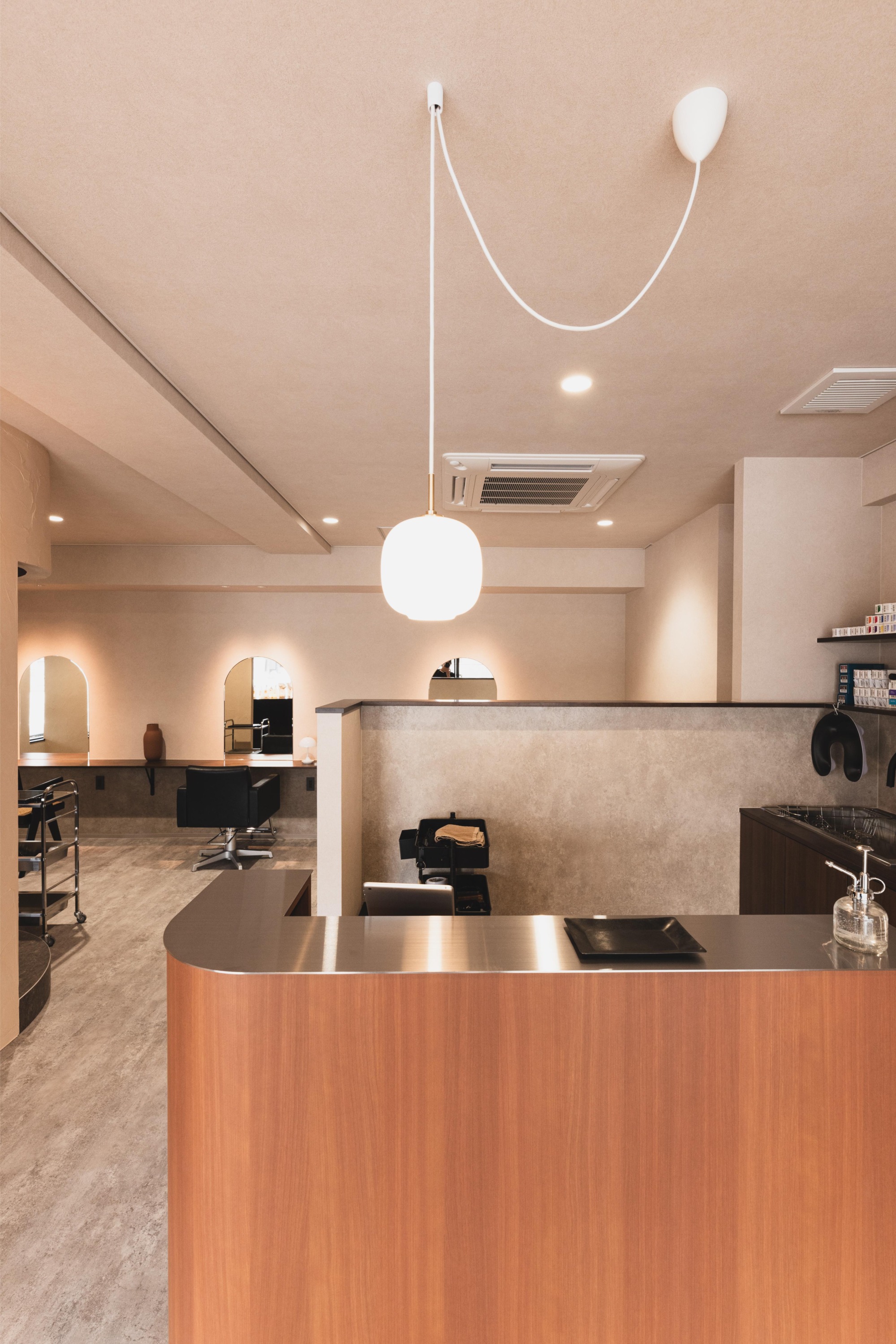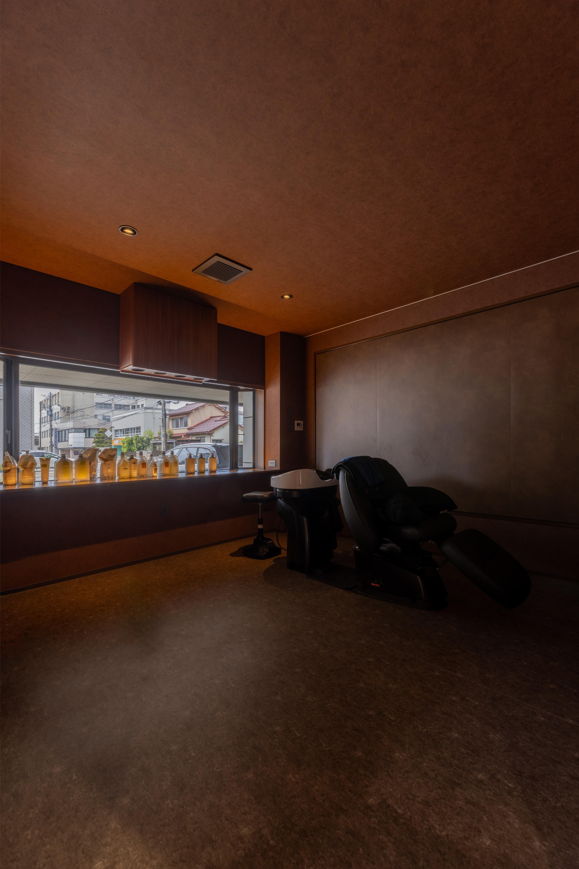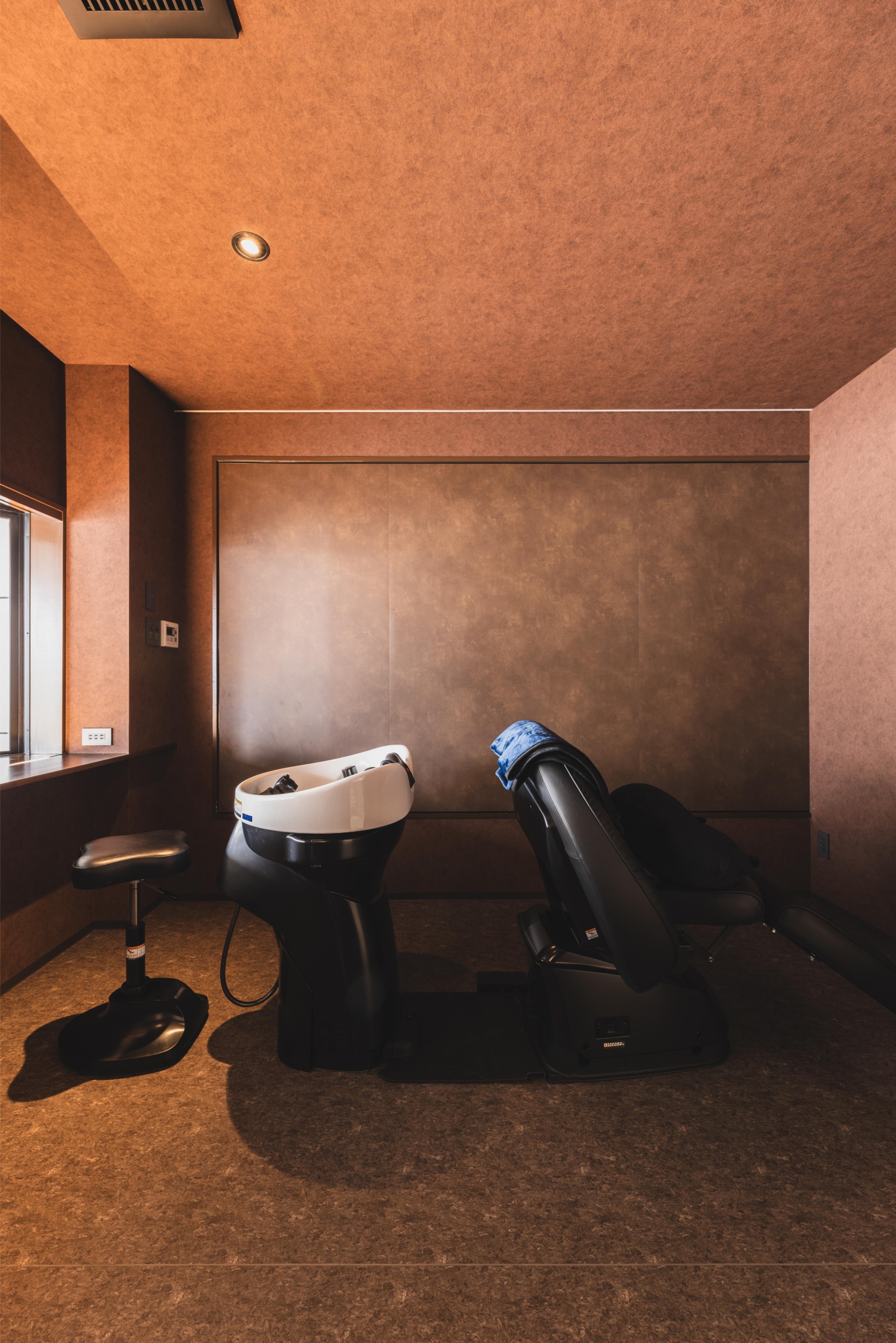 隠れ家のように、くつろげる贅沢な時間を提供できるように、シャンプー台は籠れる空間に