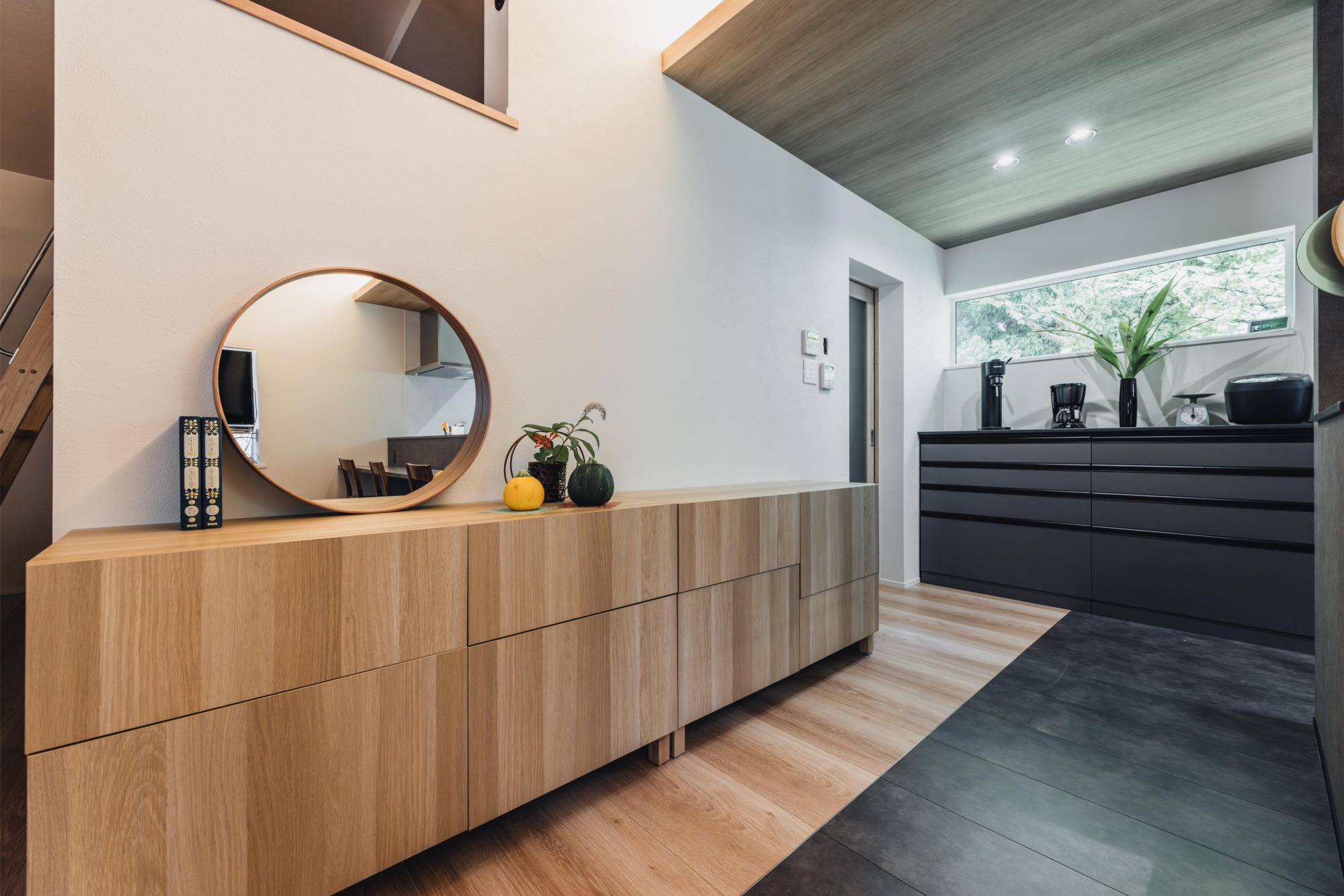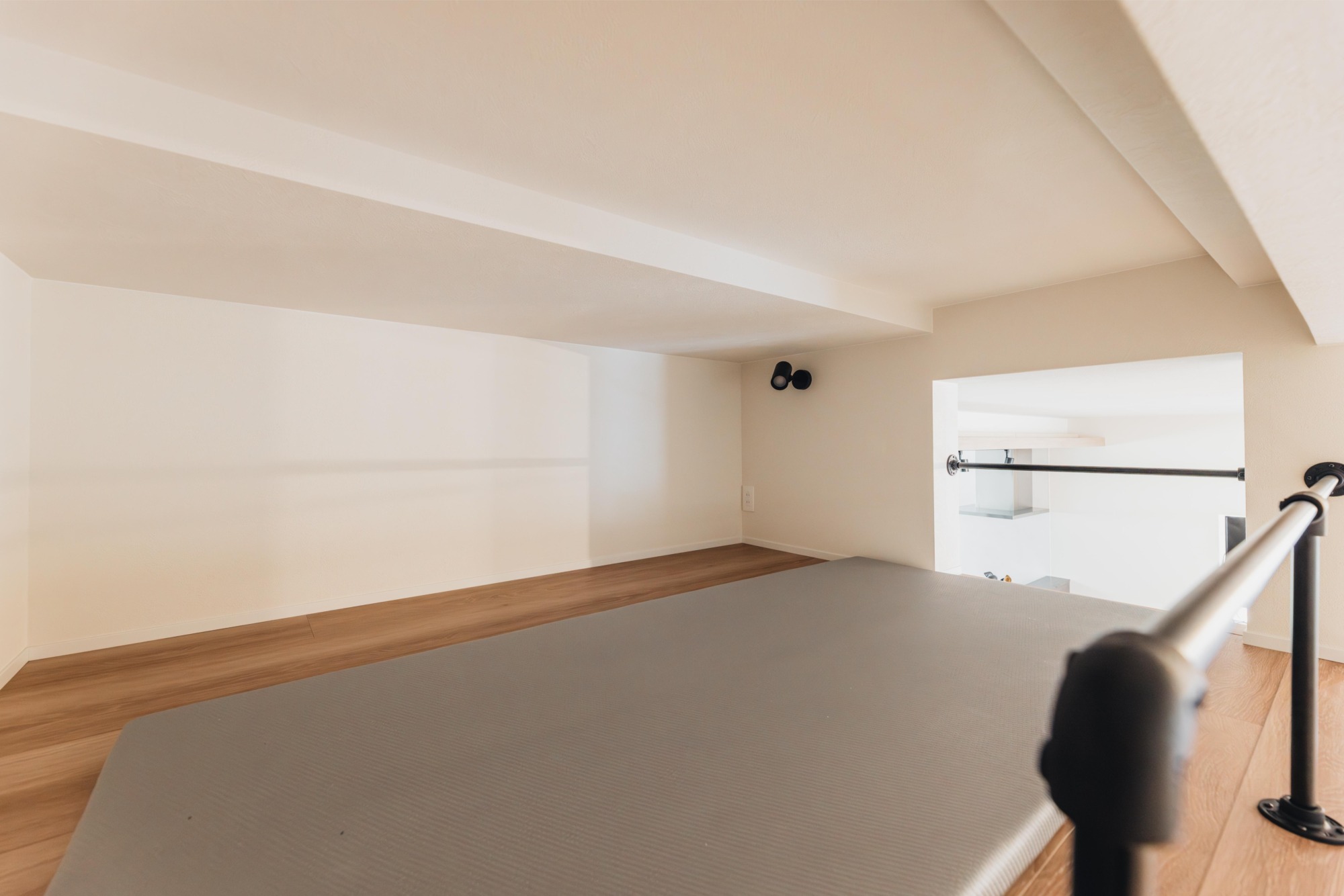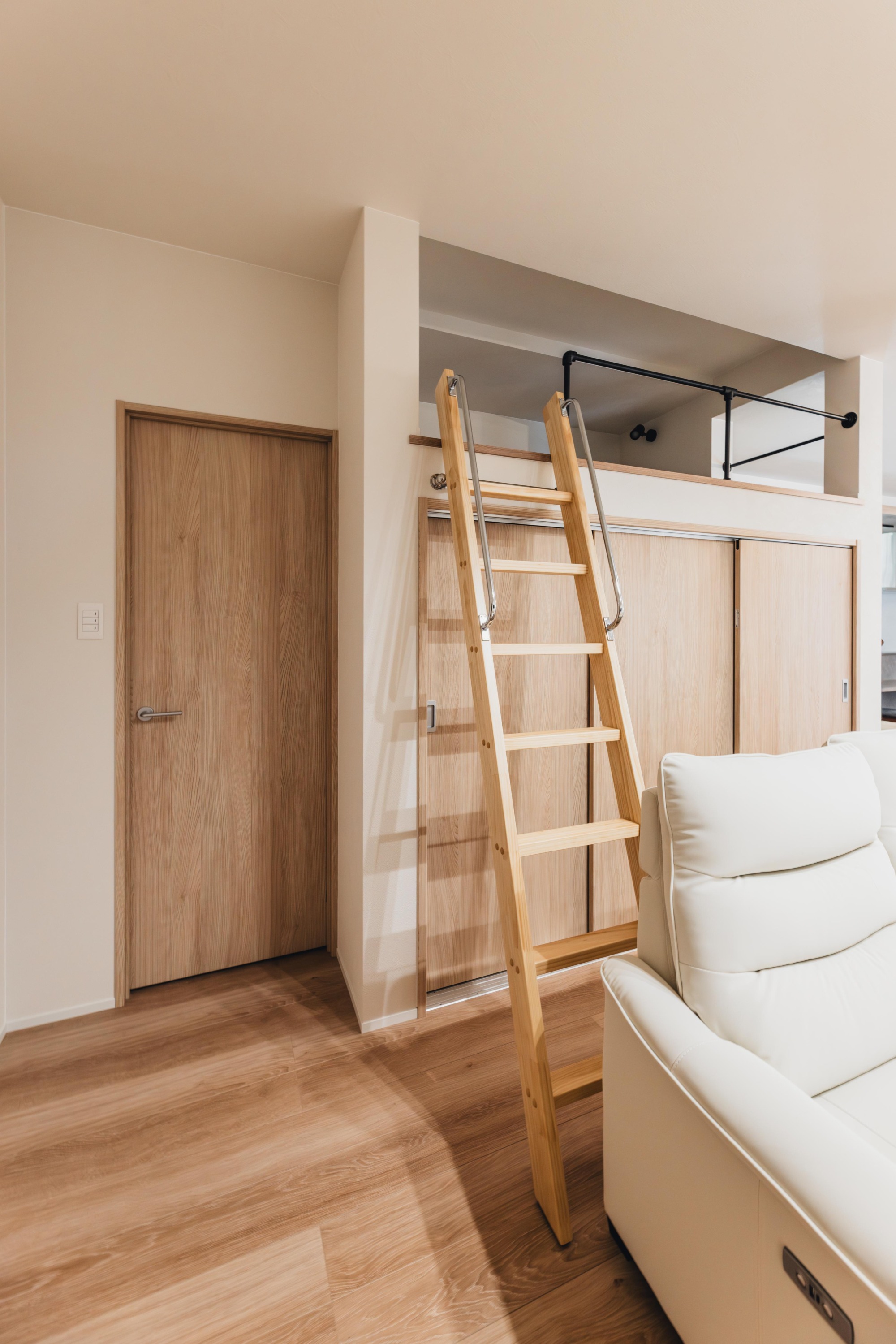 収納は必要最低限のスペースを確保し、上部にはプライベートな隠れ家的空間として活用できるロフトを設けました。天井の高さは限られているものの、横になってくつろいだり、静かな午後のひとときを過ごすお昼寝スペースとして、心地よい時間が楽しめます。