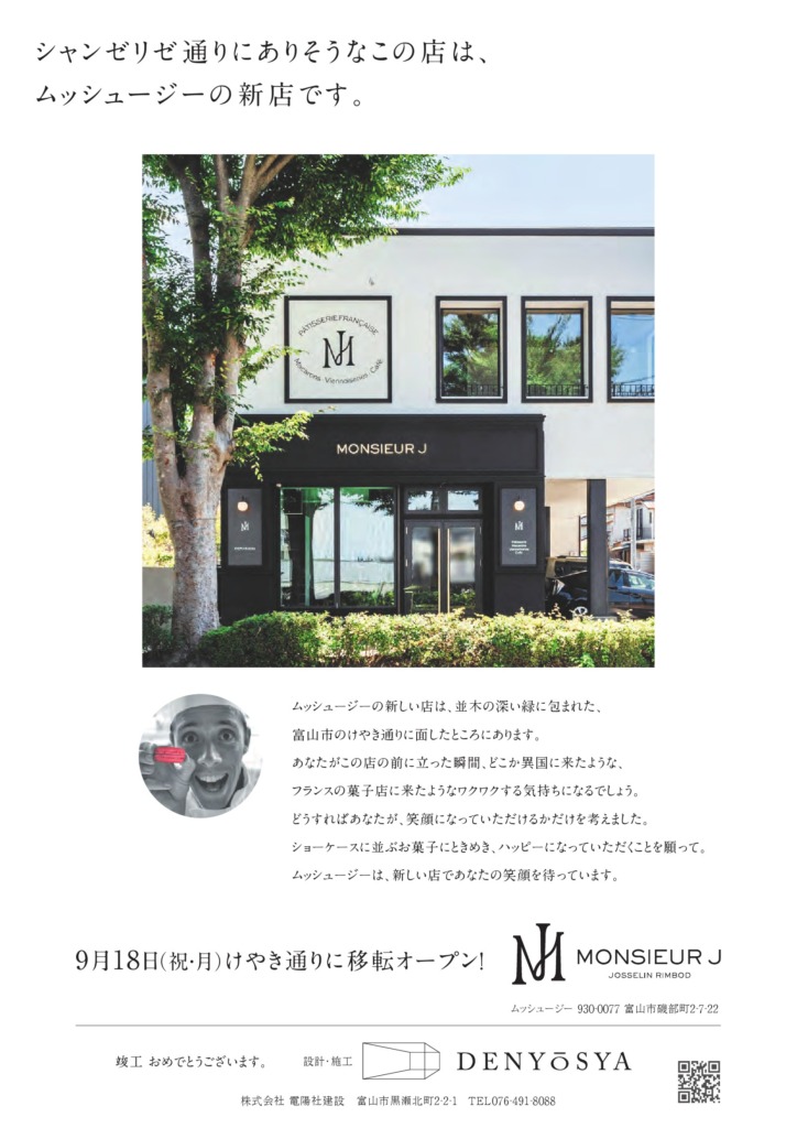 北日本新聞社が1977年に創設した「北日本新聞広告賞」は、読者と企業、地域社会のニーズに応える優れた広告を奨励することを目的としています。この度、第47回の同賞において、ムッシュー・ジー様の新店舗の広告が特別賞を受賞したことは大変光栄なことです。
