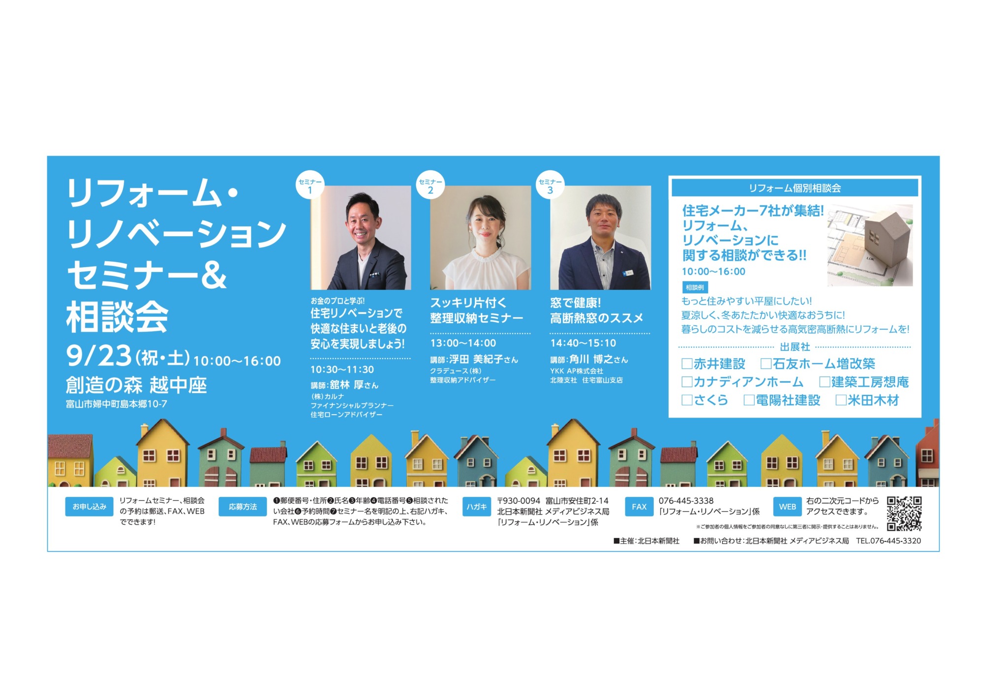 9/23(土曜) 越中座にてリフォーム・リノベーション相談会開催