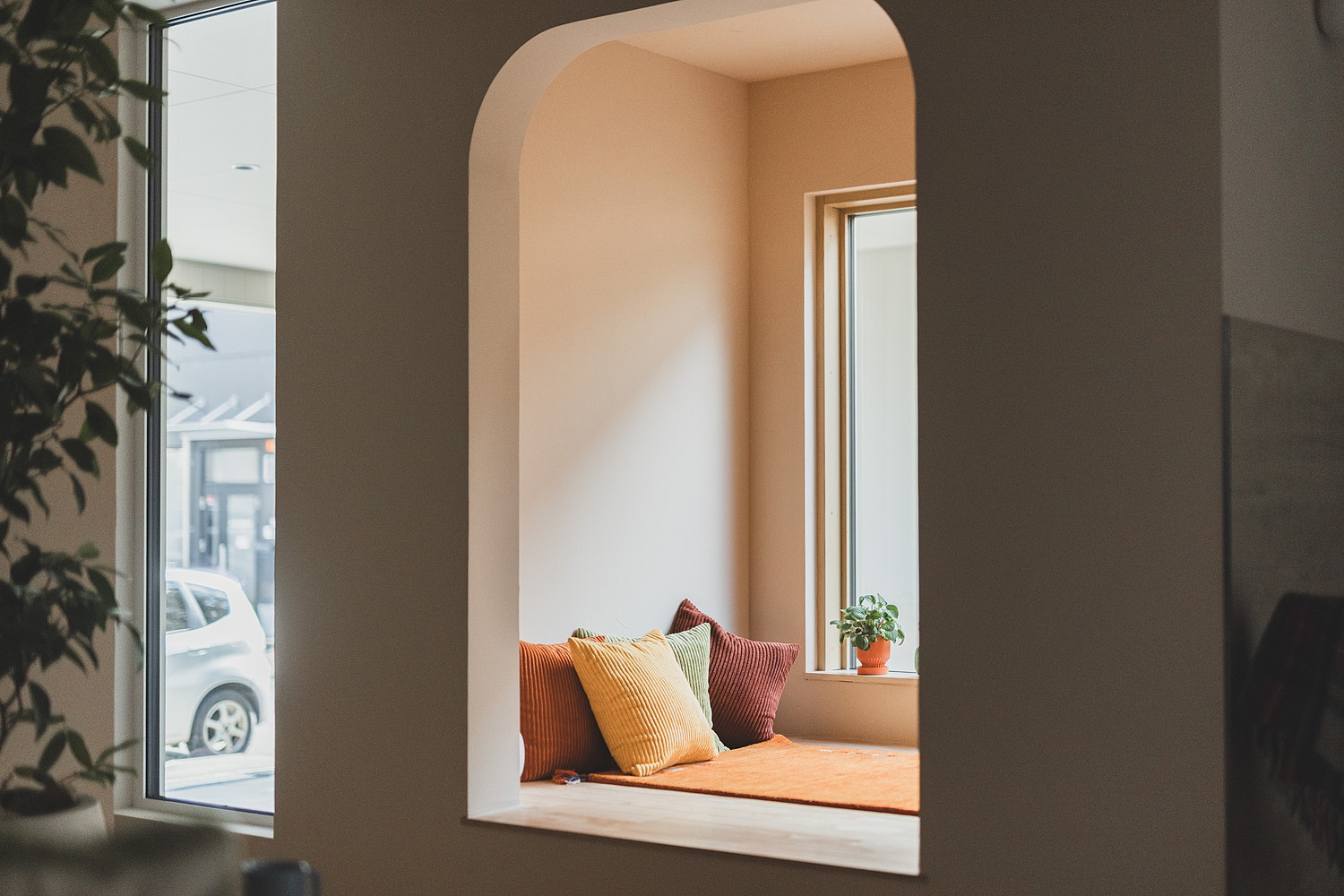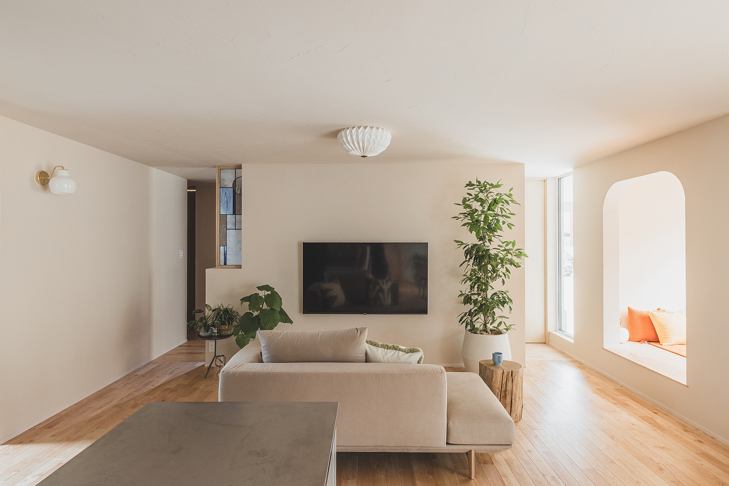 アーチの奥には、包まれるような小さな居場所も。