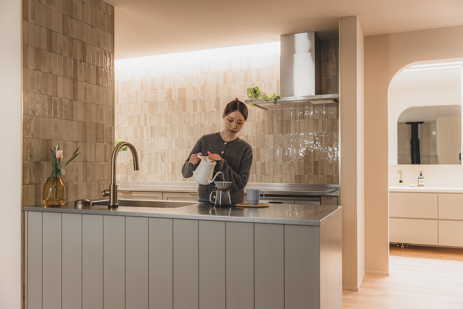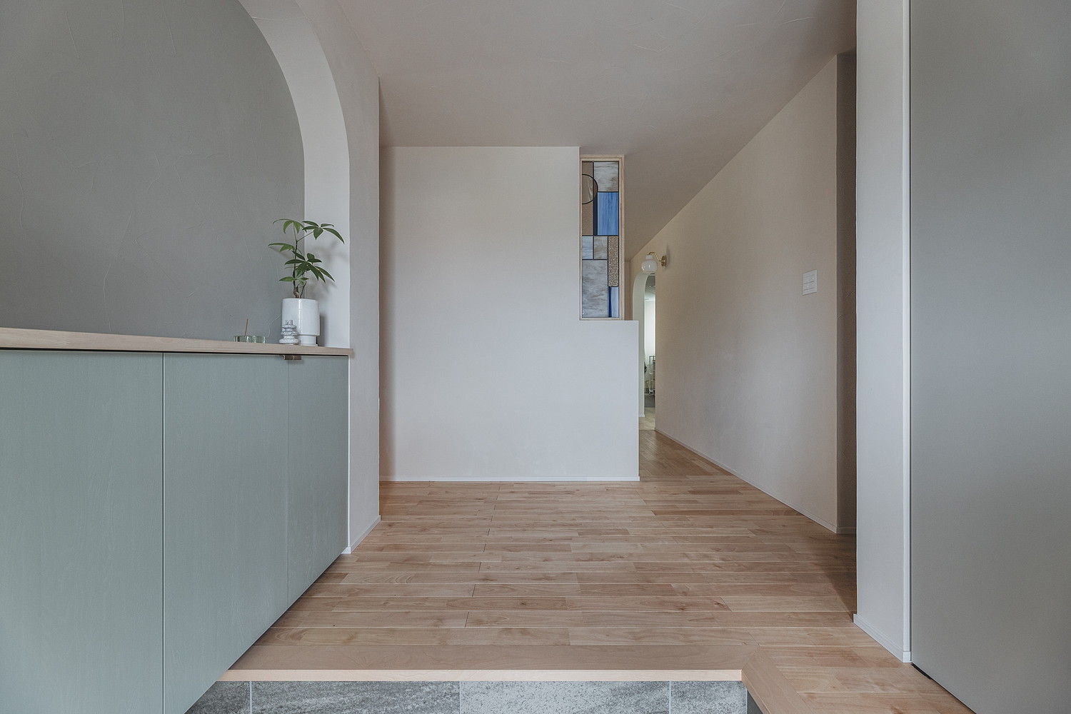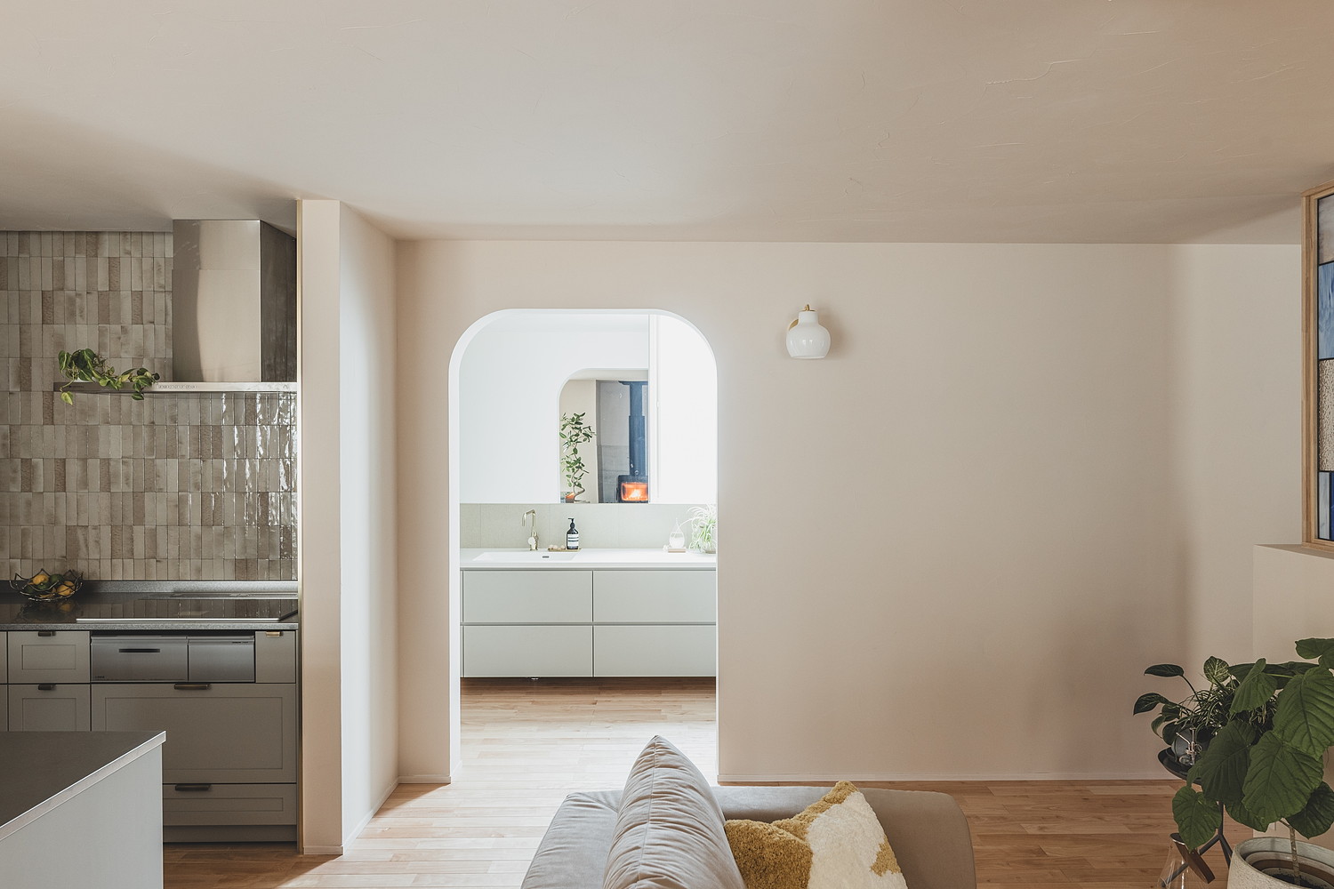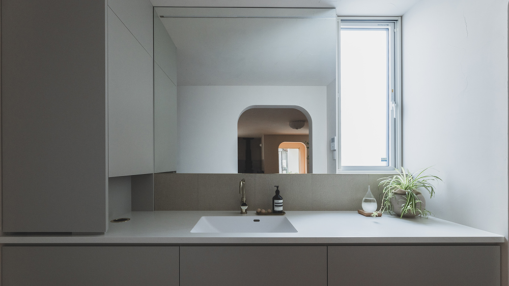 アーチを抜けて、光あふれる洗面空間へ